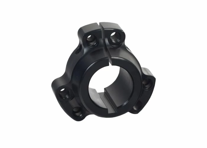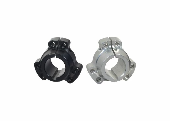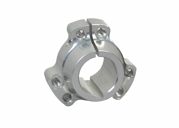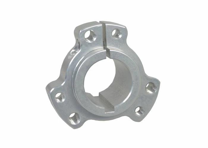 The hub pieces have been pre-drilled to accept standard 1/4″ or 5/16″ bolts; the bolt holes having a 2-1/2″ circle. In addition, the bore has been milled for 1/4″ axle key