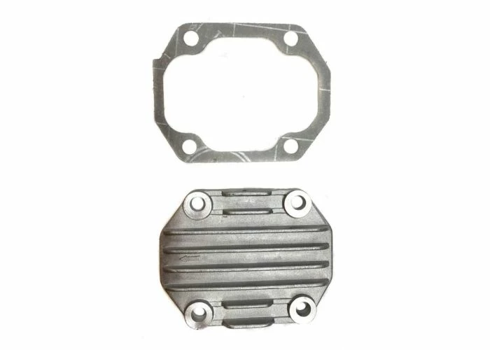 This silver colored cylinder head and rocker arm cover for TaoTao ATK125A, GK110, and Jeep Auto go-karts comes with the gasket and four bolt holes in the cover to keep it down snug